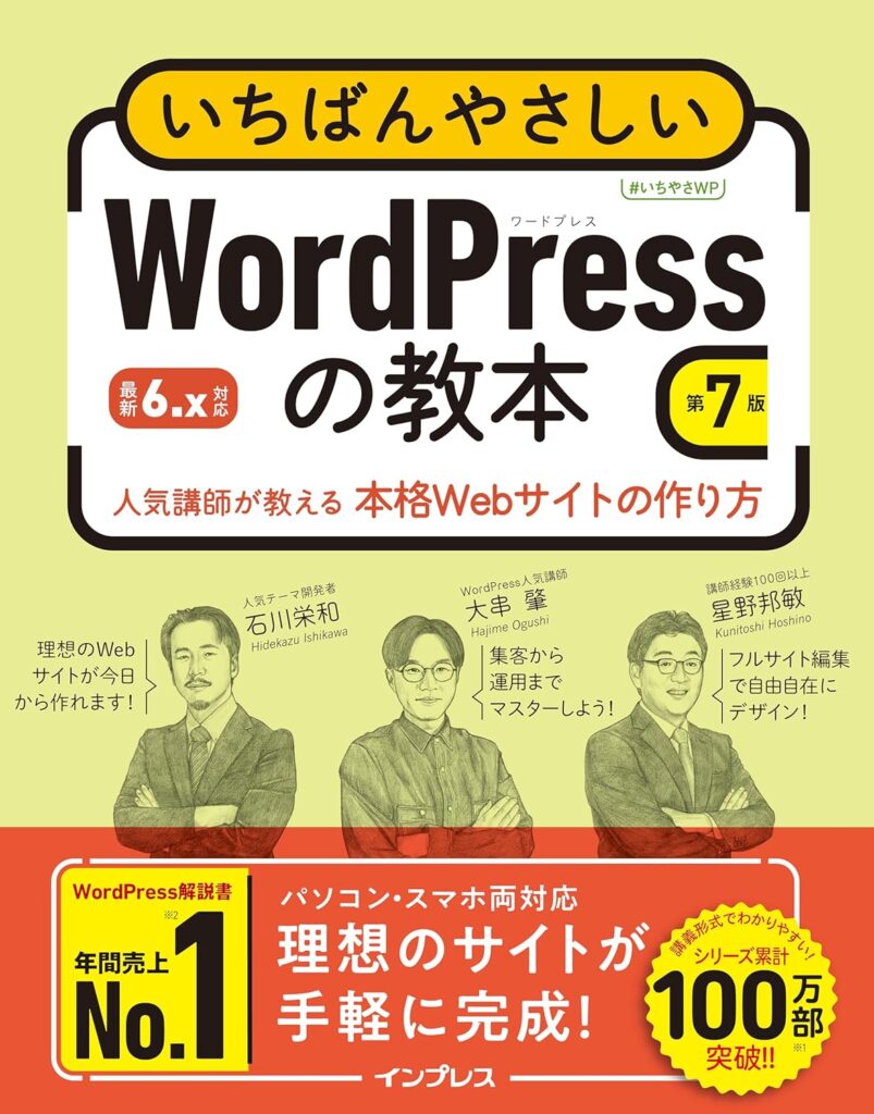 初版の発売から早10年以上!WordPressをはじめて触る人にもウェブサイトが開設できるところまで細かく解説した、ベクトル代表石川共著の最新書籍「いちばんやさしいWordPressの教本」の第7版が2025年10月1日より発売中!執筆時のバージョンは WordPress 6.8 でテーマ X-T9 を題材にしています。