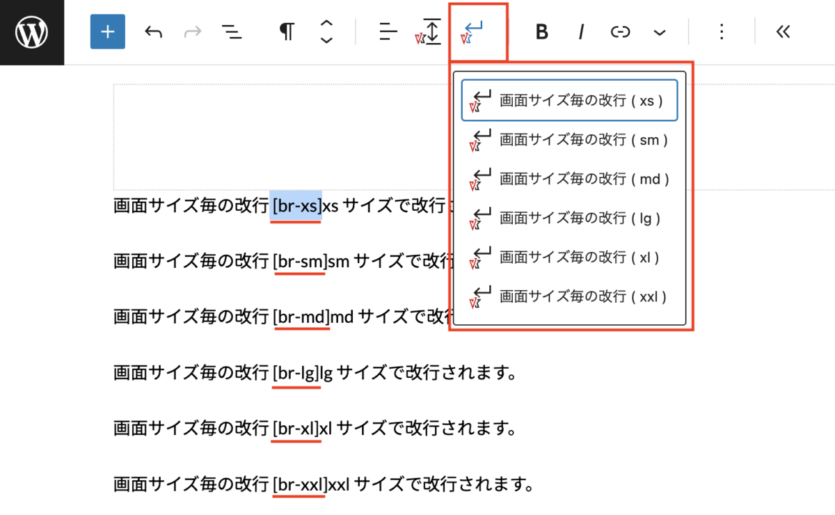 見出しなどでテキストの改行位置を画面サイズ毎に設定できる機能です。